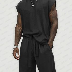 the Midnight Edge Ensemble. Featuring a sleek black bralette, distressed high-waisted skinny jeans, and a cropped leather jacket, this all-black outfit radiates confidence. Paired with chunk