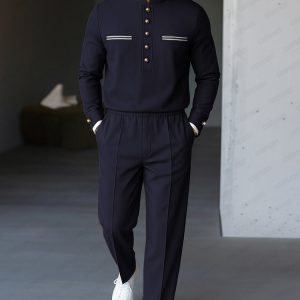 Command the room with the Midnight Authority Suit. This impeccably tailored navy blue double-breasted pantsuit features sharp lapels and structured shoulders for a bold, confident silhouette