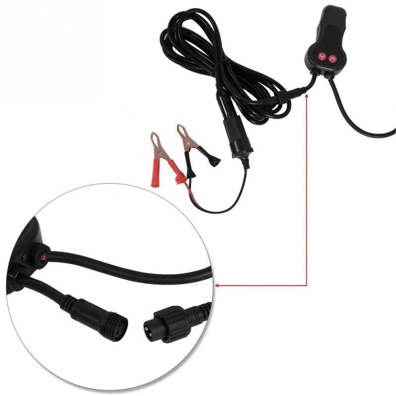 - Push button controller with long enough line. plugs into car 12 volt power outlet.
