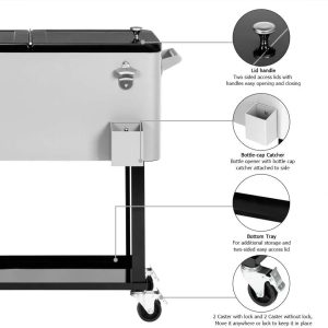 80 Quart Rolling Cooler Cart for Outdoor Patio Deck Party, Portable Party Bar Cold Drink Beverage Cart