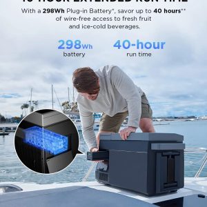 - 40-hour Extended Run Time This portable refrigerator runs for up to 40 hours when connected to an optional 298Wh plug-in battery by a powerful compressor