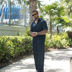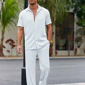 - Bottoms: Elastic waistband with adjustable drawstring, two side pockets, one back pocket?