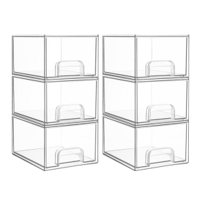 These compact drawers bring order to vanities, bathrooms, kitchens, and office shelves without taking much shelf space. Clear design supports quick visual checks and blends with different rooms. Smooth pull handle lets access contents without tugging. Pack choices let you build a single row, stack vertically, or expand across a shelf as storage needs grow.