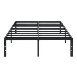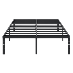 This metal platform bed frame is constructed with steel slats that maintains structural foundation during use. The design distributes mattress weight evenly to help minimize wear over time. The powder-coated black finish helps resist surface scratch and maintains a clean, modern look suitable for various room styles.