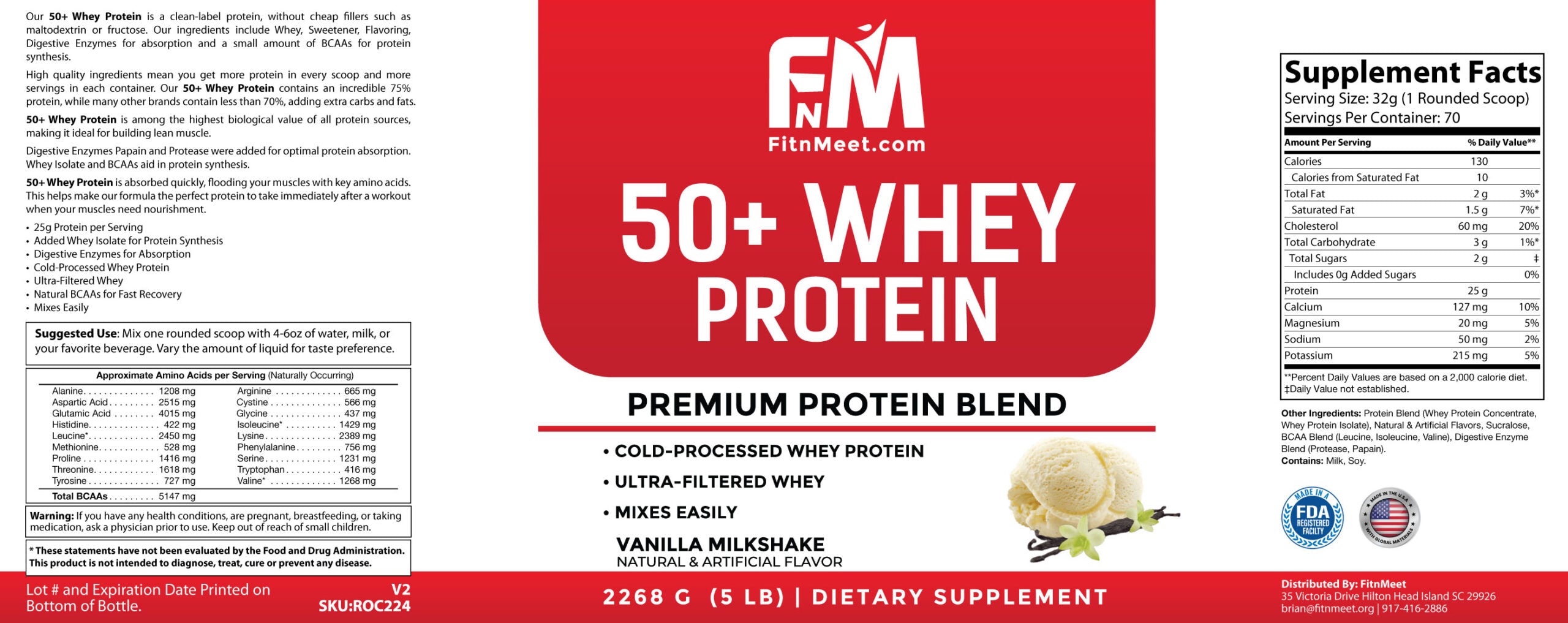 50+ Whey Protein Powder Vanilla – 5 lb (70 Servings)