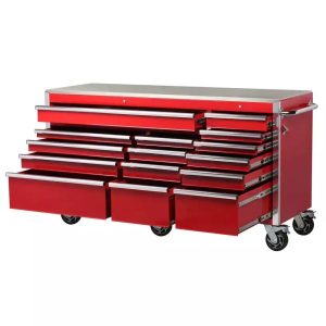 Heavy-Duty 72 in. W x 24 in. D 15-Drawer Tool Chest Mobile Workbench with Stainless Steel Top and Dual Locks in Red