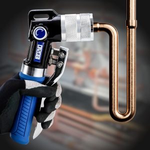 Hydraulic tube expanding tool kit, used to expand 3/8-inch copper tubes to 1-1/8 inches.