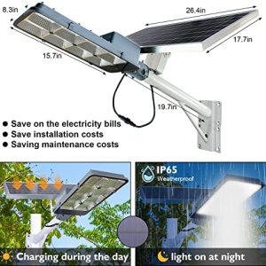 450W Solar Street Flood Lights Outdoor Lamp with Remote Control Dusk to Dawn Security Lighting for Yard Garden Gutter Basketball Court Arena Lawn lm